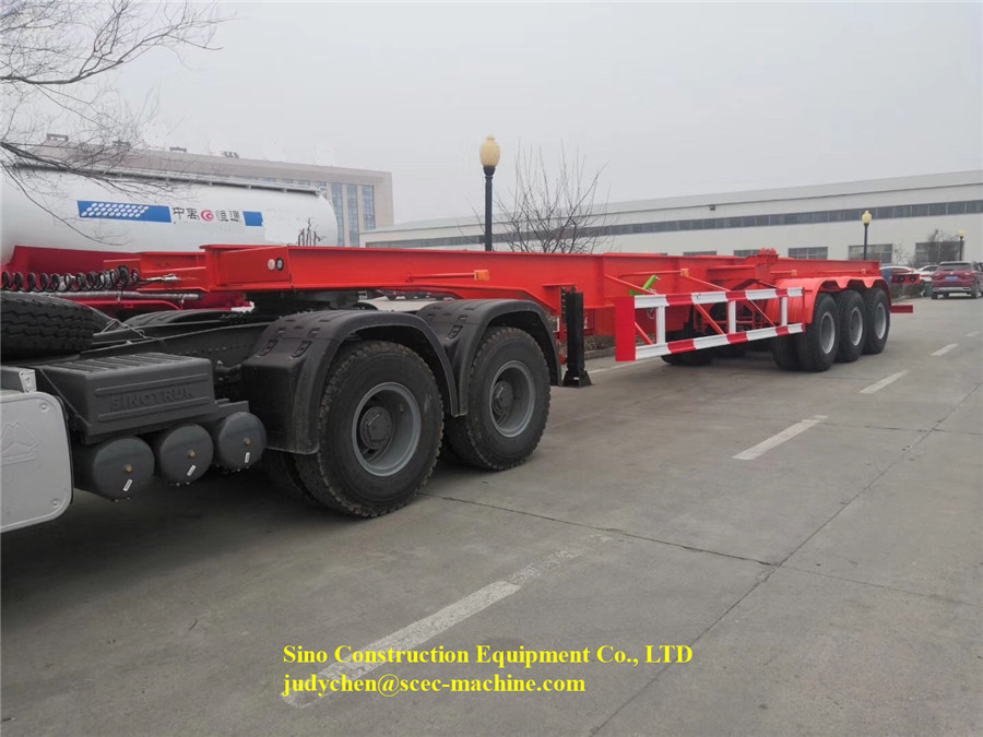 Skeletal trailer can transport a 20-foot container, a 40-foot container, a 45-foot container or two 20-foot containers at the same time.